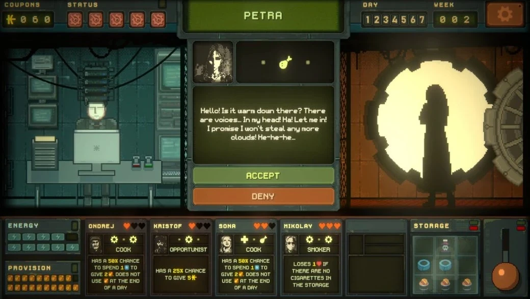 Например, игроки в качестве смотрителей смогут впускать в убежище новых жильцов, каждый из которых может как оказать серьёзную помощь, так и привести выживших к гибели. Однако опасность будет исходить не только от людей, ведь бункер может столкнуться с поломками, внутренними проблемами и внешними угрозами — груз ответственности ляжет именно на плечи игроков.