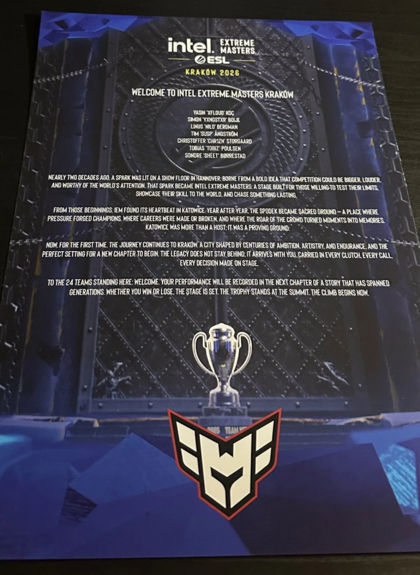 Напомним, IEM Krakow 2026 стартует уже завтра, 28 января, и продлится до 9 февраля. Участники разыграют внушительный призовой фонд в размере $1,25 млн.
