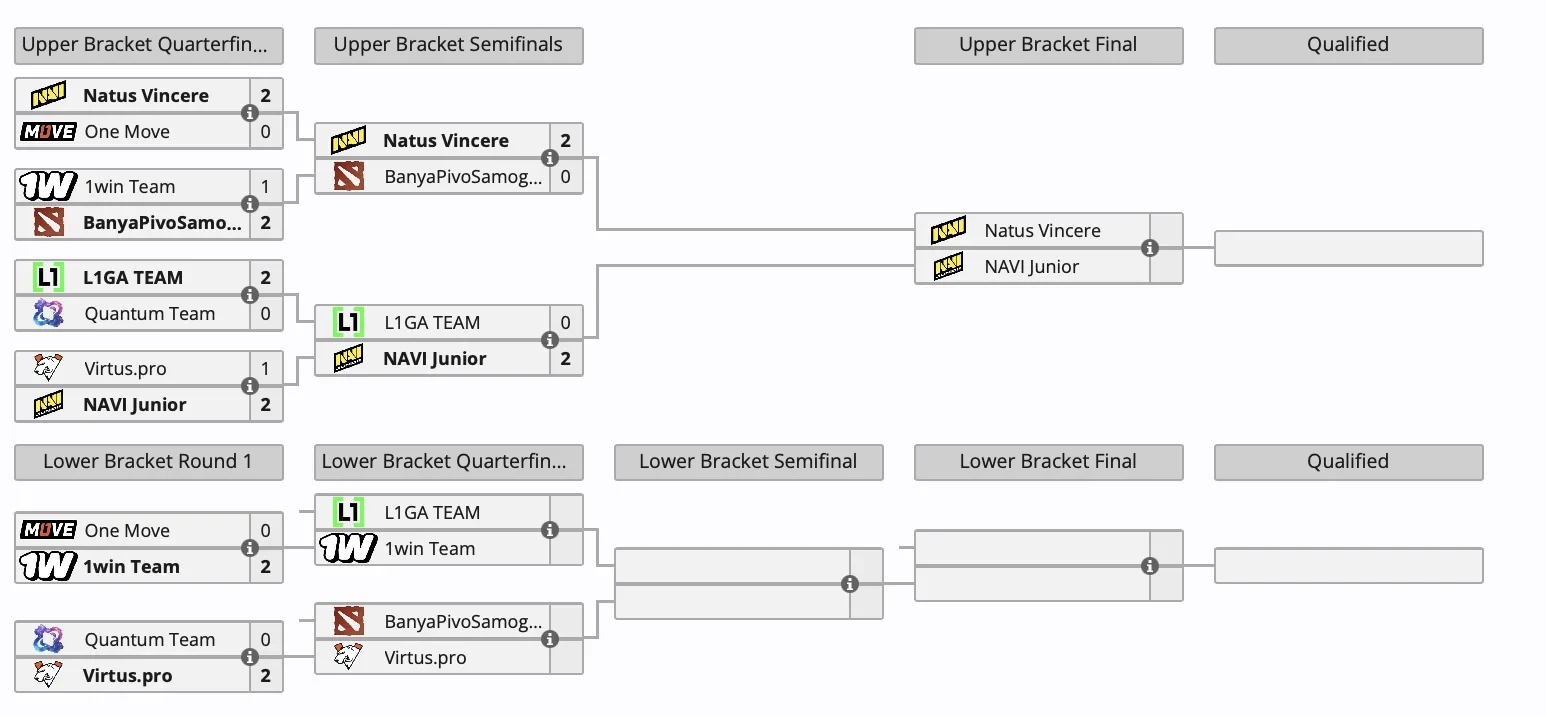 В нижней сетке продолжают борьбу L1GA TEAM и 1win Team, BanyaPivoSamogon и Virtus.pro. Победители сыграют между собой, а проигравшие покинут соревнование. Отборочные завершатся уже 15 января.