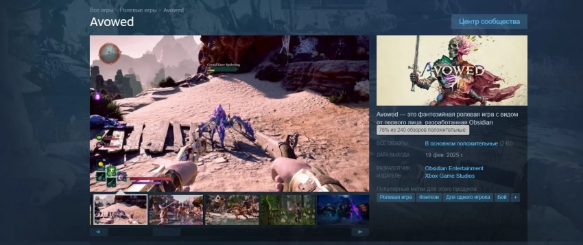 Avowed получила геймплейные ролики с началом прохождения и неплохой рейтинг в Steam