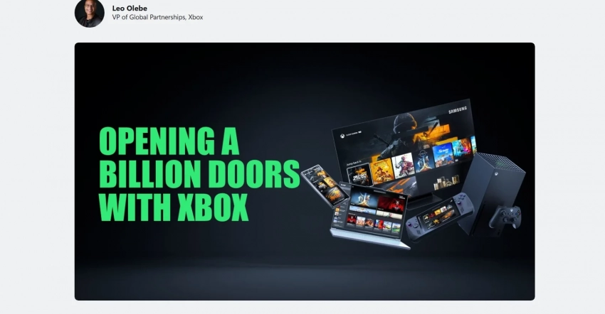 Сейчас в упомянутом посте всё так же обещают «открыть миллиард дверей с Xbox», но заглавное изображение выглядит так: