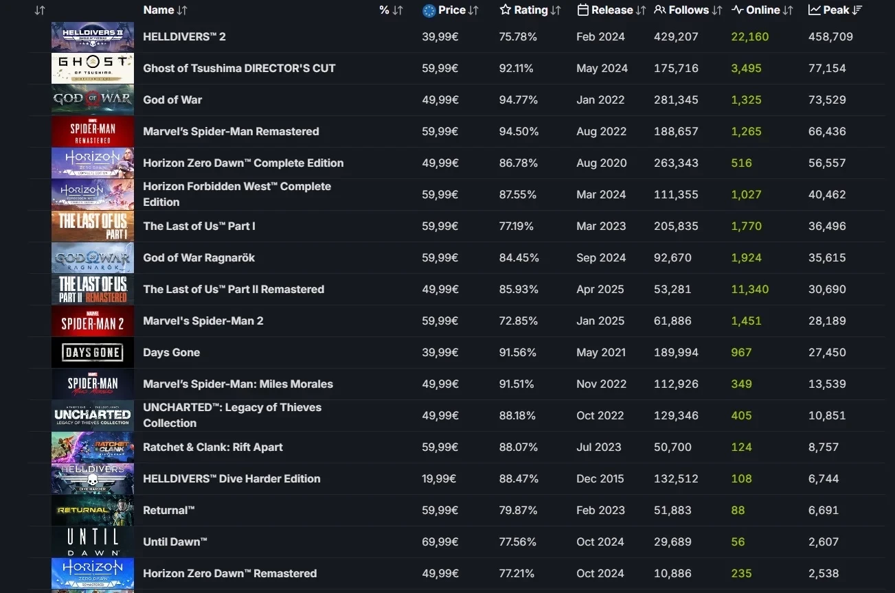 Показатель не дотянул до пика порта The Last of Us Part 1, который в день релиза привлёк 36 496 игроков одновременно.
