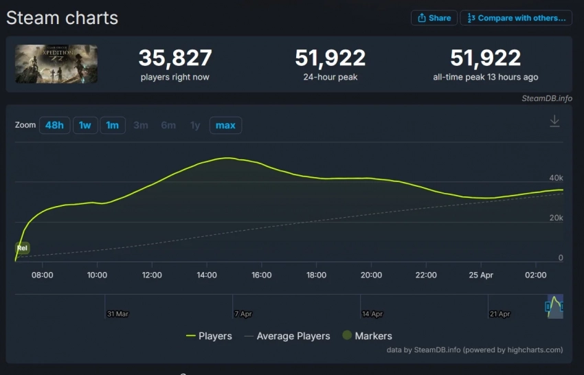 Ещё больше интересных видео на YouTube канале Игромании!Обложка: скриншот игры Clair Obscur: Expedition 33Пиковый онлайн Clair Obscur: Expedition 33 в Steam за первые сутки с релиза достиг 51 922 игроков одновременно.