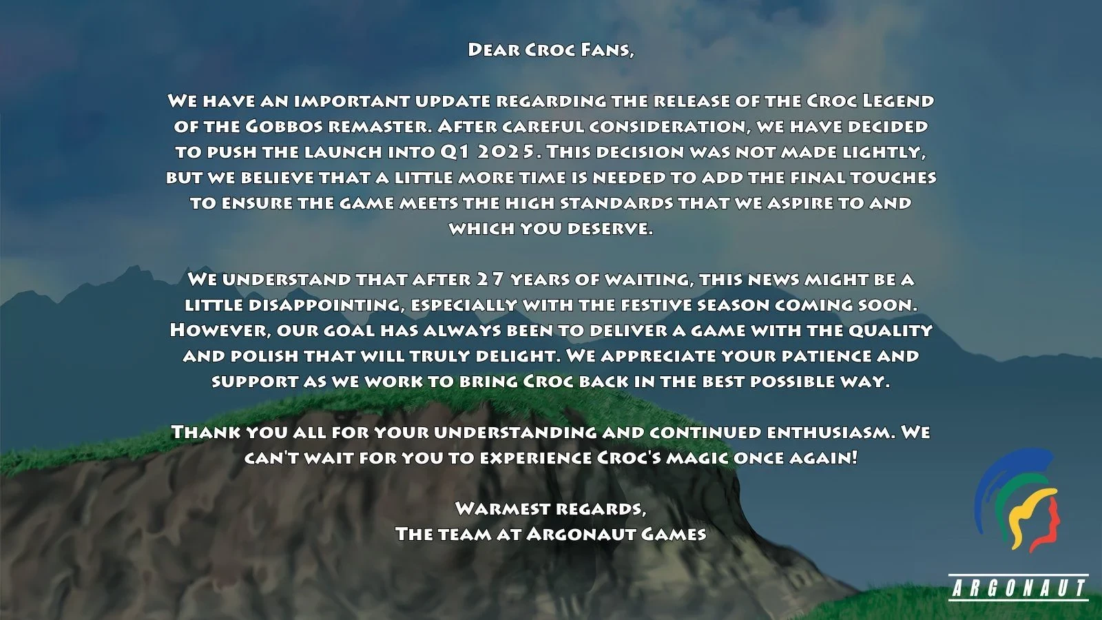 Мы понимаем, что после 27 лет ожидания эта новость может немного разочаровать, особенно с учетом приближающегося праздничного сезона. Однако нашей целью всегда было создание качественной и доработанной игры, которая по-настоящему восхищает. Мы ценим ваше терпение и поддержку, пока мы работаем над тем, чтобы вернуть Croc в наилучшем виде.