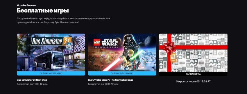 Прямо сейчас, напомним, в Epic Games Store раздают LEGO Star Wars: The Skywalker Saga (недоступна в России) и Bus Simulator 21.