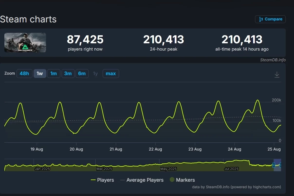 Пиковый онлайн шутера Delta Force в Steam превысил 210 тыс игроков одновременно