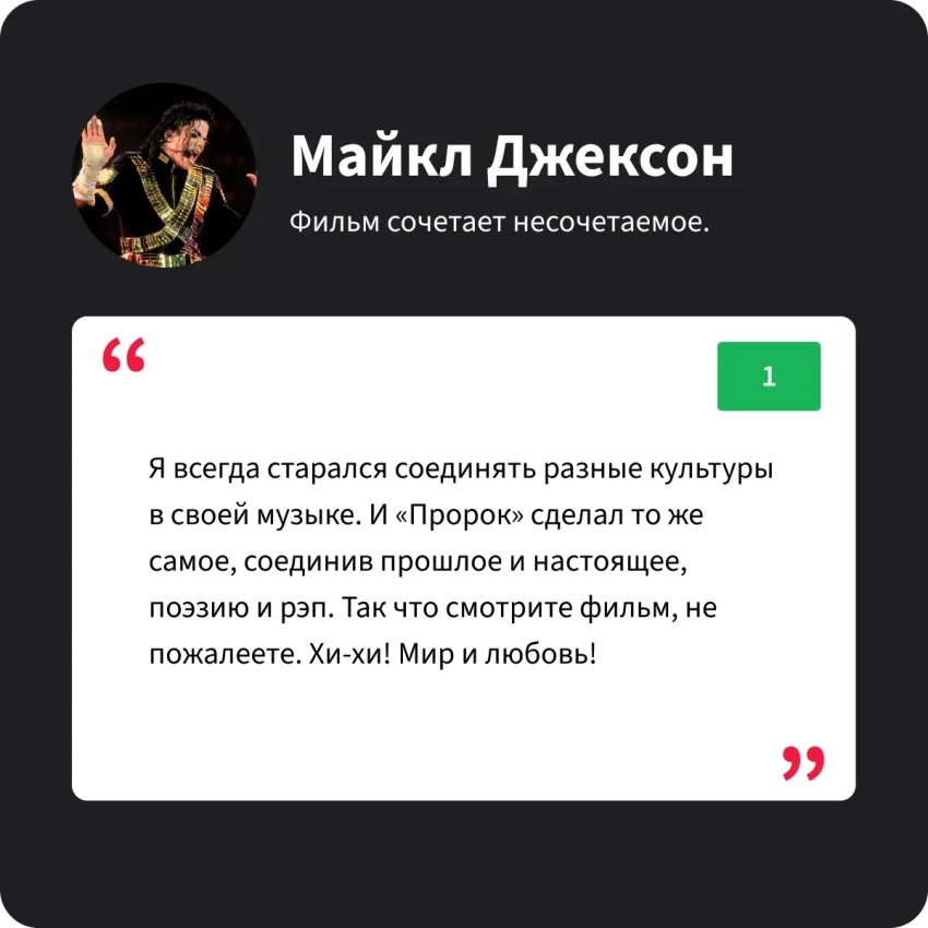 Ну как не показать мюзикл королю поп-сцены? Майкл, по собственному признанию, читал Пушкина раньше, но благодаря «Пророку» смог прочувствовать энергию его личности!