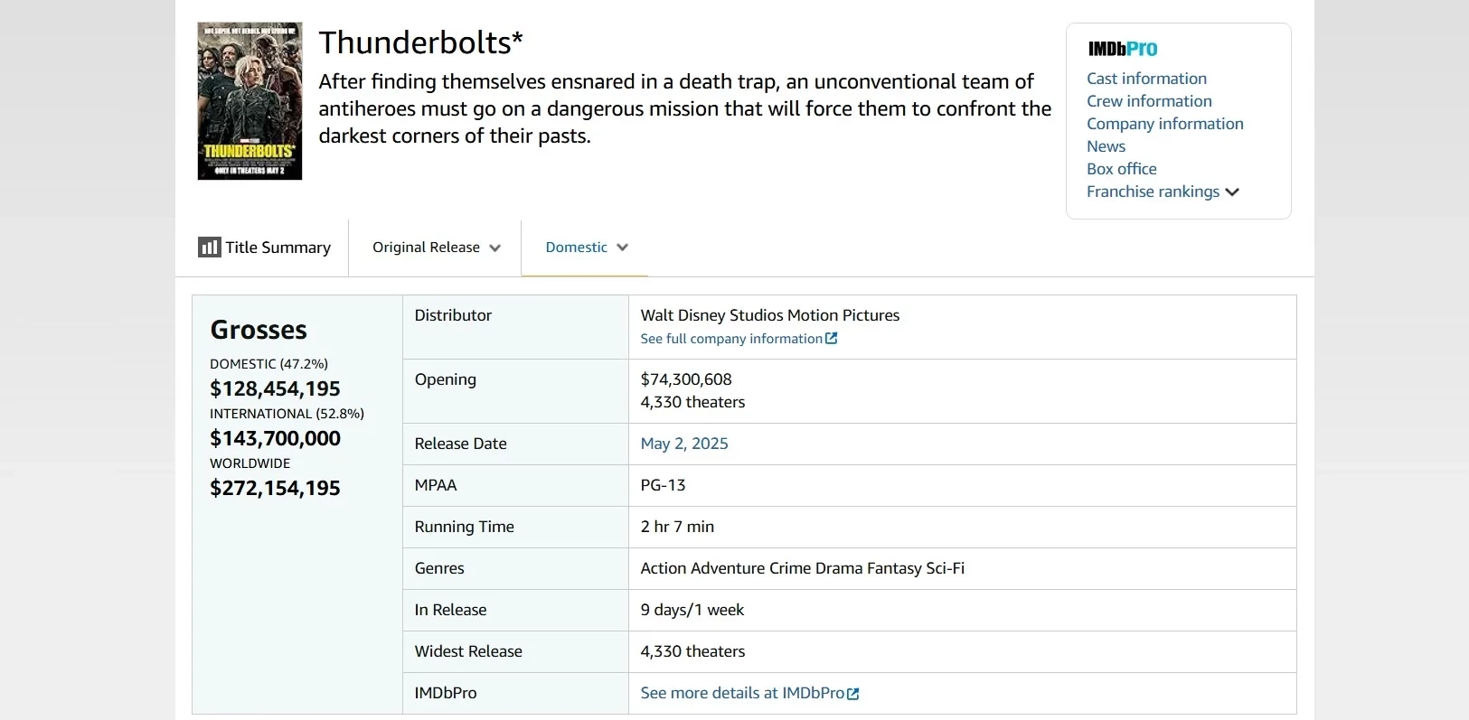 «Громовержцы*» — 33,ё млн долларов в США (272,1 млн долларов в мире);
