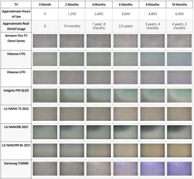 - Через десять месяцев стресс-теста, эквивалентного четырём годам и трём месяцам эксплуатации при нормальных условиях, признаки выгорания проявились у всех OLED-телевизоров, хотя и в разной степени.