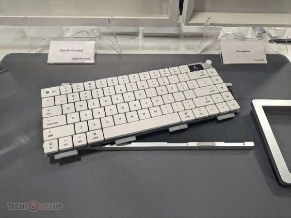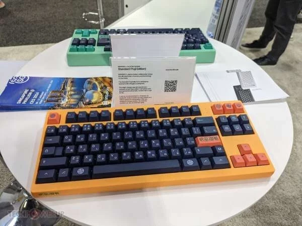 Как уже было сказано, звездой выставки стала Monokei Systems — низкопрофильная модульная 75% механическая беспроводная клавиатура с переключателями Kailh Choc v2 Silent или Choc v2 Tactile на выбор. Модульная часть довольно интересна, так как вы можете менять практически все, включая переключатели, кейкапы, прокладки, верхнюю и нижнюю части корпуса и лицевую панель, все алюминиевые, легко заменяемые, так как они держатся на магнитах. Вы даже можете заменить печатную плату, что означает бесконечные возможности и будущие обновления.