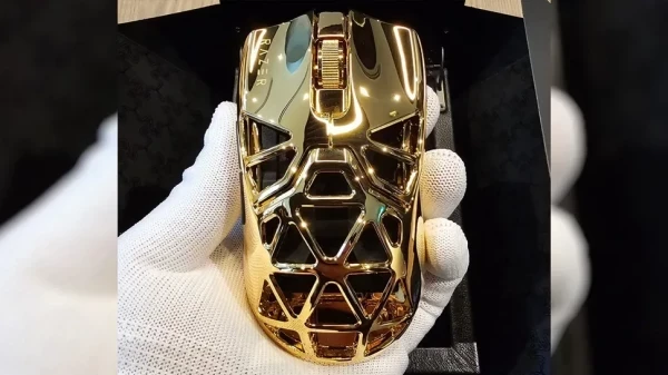 Корпус мыши имеет золотое покрытие в 24 карата. По словам производителя, камера не может передать всего великолепия красоты нового корпуса и это лучше всего наблюдать вживую.