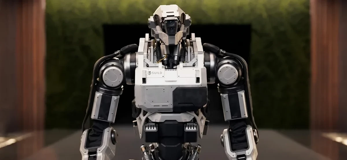 - У The Guild три ключевых продукта антропоморфный робот для автономного патрулирования и оценки угроз; вооруженный наземный дрон для выявления и нейтрализации агрессии (без юридической ответственности владельца) R.A.W.G.; и автономный аэродрон для сканирования, картографирования и оценки рисков в реальном времени.